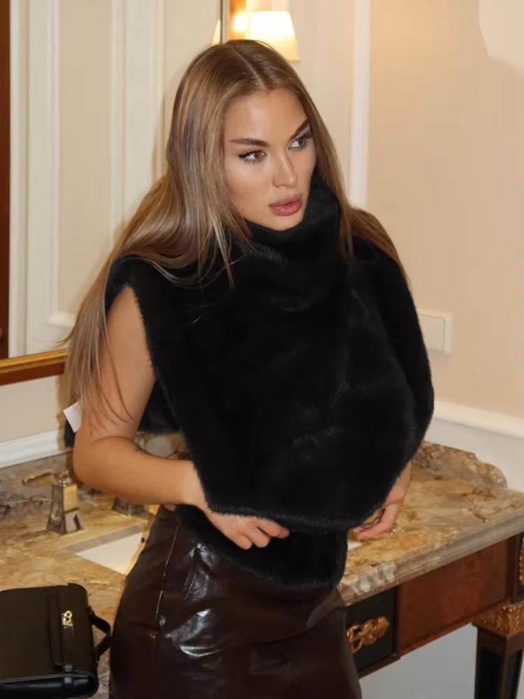 BOOFEENAA Turtleneck Furry Warm Vest Sleeveless Jacket Coat Faux Fur Top Women Trendy Winter Clothes 2025 C85-CZ29
