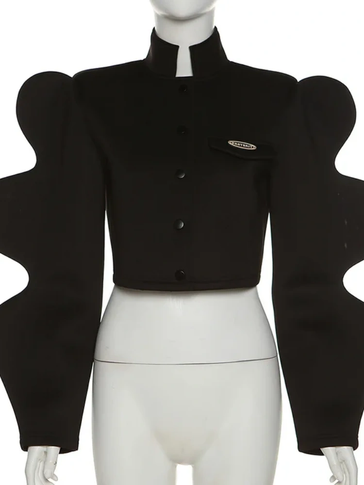 BOOFEENAA 3D Lantern Sleeve Black Cropped Jackets for Women 2025 Fashion Style Cardigan Futuristic Clothing Outerwear C83-DE39