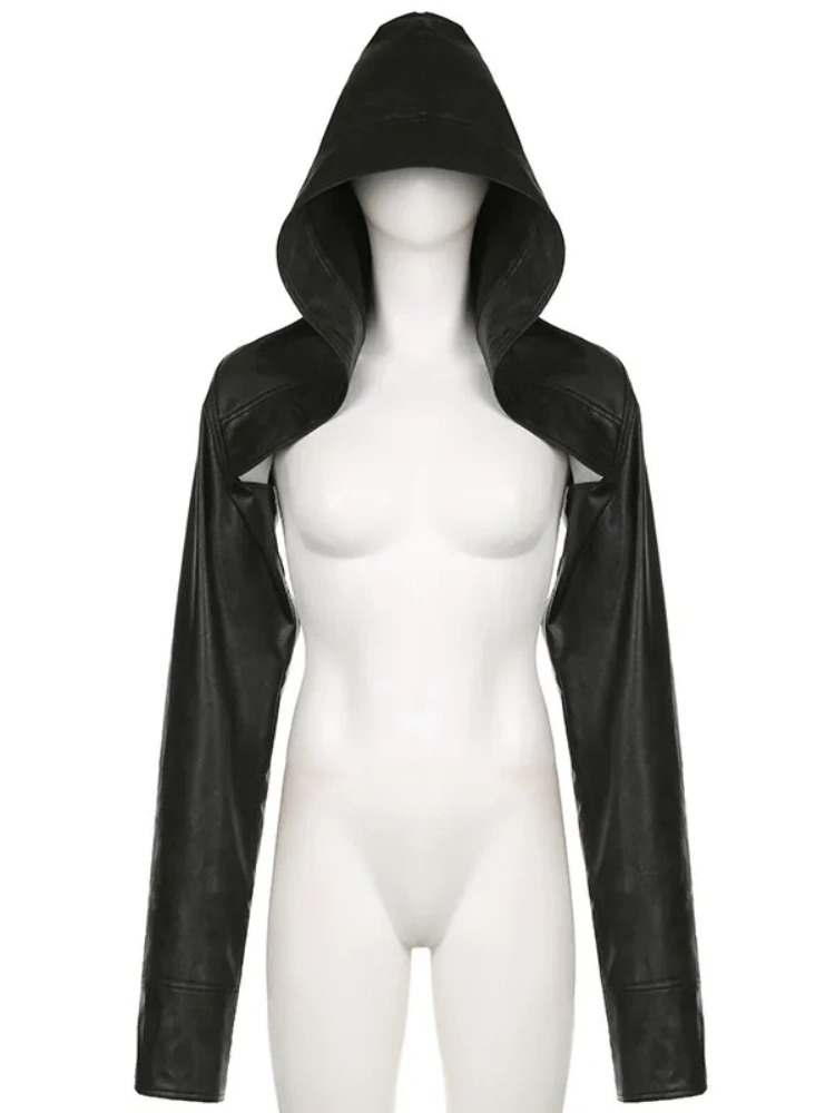 BOOFEENAA Crop Faux Leather Jacket Hip Hop Streetwear Hooded Ultra Short Black Coat Fall 2023 Fashion Women Clothing P84-DD33