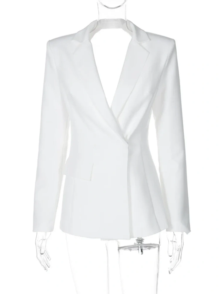 BOOFEENAA Hollow Out Backless Blazers Fall Clothes 2025 Women Fashion Sexy Long Sleeve Top White Black Jacket C70-GI48