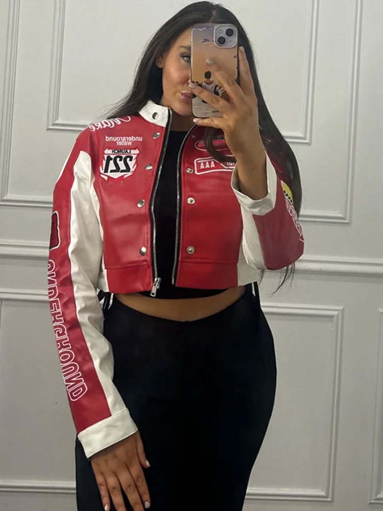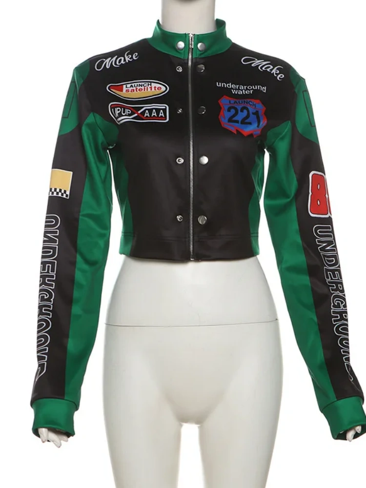 BOOFEENAA Retro Printed Baseball Jackets Long Sleeve Varsity Jacket for Womens Coats Winter Clothing 2024 D87-CF26